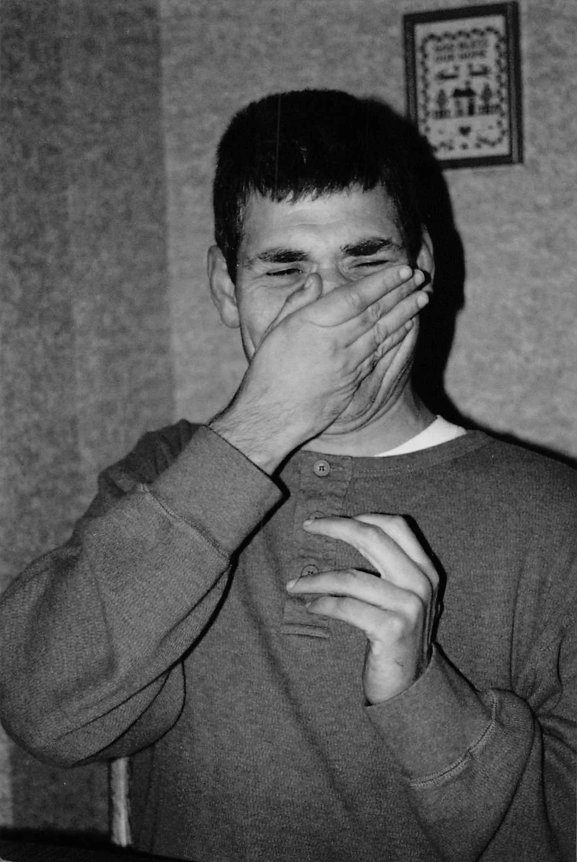 There was always an eagerness to find meaning in the syllables he put together. As a part of his speech therapy, he was taught an abbreviated form of sign language, expecting he may make more use of that method. It proved to work a bit. With frequent repetition over several years, he could use his sign for “eat” in context. American Sign Language teaches a hand with the tips of the gathered fingers pointed toward the mouth. For Kevin, it was his open hand pressed to his mouth, or his nose, or his chin.